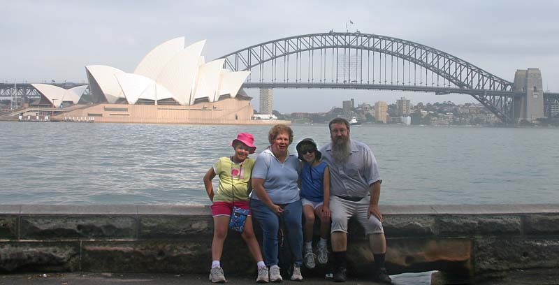 January 27-February 12, 2006 - Australia Day and Sydney: Australia Day was actually Thursday the 26th; we spent it at home, avoiding the heat! Friday continued hot, so it was another day with little outside activity. Saturday added high humidity to the mix, and we had Shane, Katrina, William and Francesca over for the evening, and had a lovely time (inside!). Sunday was a day of cleaning and sorting and getting ready for first term of the new year. Monday was exciting for Lucy, since she got her new glasses. Tuesday, both girls went off with Katarina, Zof and Anj to a ceramics place to spend the day decorating a few special pieces. In the evening, it was once again swimming lesson time - and a very nice day for it - not miserably hot, but warm enough to make the water pleasant.