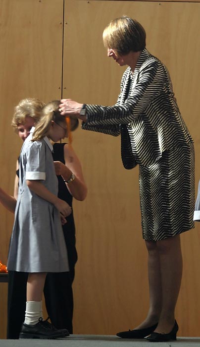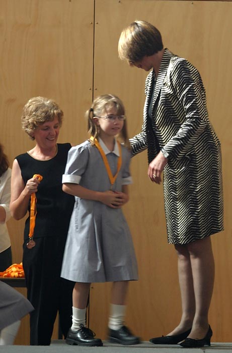 So - Lucy went to school and spent the morning in the gym, preparing some cheers for the upcoming Sports day and then watching a movie. We kept Clara at home, to allow her to complete some homework and rest. This appeared to help, and when she went back to school, she was in pretty good shape again, so she played in the softball match against St. Ignatius, and they maintained their perfect record by winning 13-11. And then Thursday brought still more excitement - a special assembly with Dr. Jane Lomax-Smith, the minister for Education in South Australia, who came to talk to the girls, and to present medals and certificates for those girls who completed the Premier's Reading Challenge this year (girls who took the challenge this year only received a certificate; those who had successfully taken the Challenge last year received a bronze medal. Both Clara and Lucy received medals (see here, here and here), and Clara is already scheming about getting a friend to send her the entry forms next year so she can compete for a silver medal, even though we'll be living back in America by then!