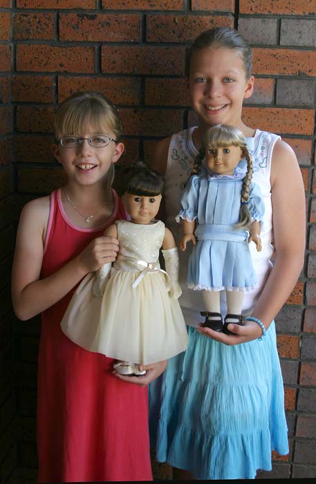 December 19-25, 2005 - Happy Christmas (as the Aussies say): Saturday, Tim had to go to work, and the girls had swimming lessons. Sunday was a quiet day, with more preparations for Christmas as well as a lot of play time for the girls - although they were quite excited and working hard much of the time getting ready for the big doll Christmas Party. On Monday, Katarina, Miranda and Isobel came, along with their dolls, and the girls had a lovely afternoon - they brought "Kris Kringles" gifts for the dolls to exchange (i.e., Secret Santa presents - only Sandy knew who everyone's Kris Kringle was), made mini pizzas, played tennis (only three balls over the fence into the neighboring court), watched the new "Felicity" movie, and had a generally good time.