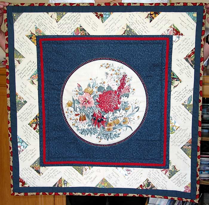 March 20-July 23, 2006 - Final Days: The days are clicking off rapidly now - Monday was Clara's last violin lesson and orchestra session - Tim, Sandy and Lucy went to orchestra practice to hear her play, since we sadly won't be here for the concert she has been practicing for all term! Tuesday, both the cars were sold (Sandy and the girls walked home from school) and we picked up our rental van. Wednesday, Tim dropped the girls off at school, while Sandy waited for the piano movers to come and take the piano to its new home with our friends James and Anna, parents of Clara's friend Lucy. Thursday brought the opening of the Clipsal 500 races through downtown Adelaide - and Sandy's last day with her quilt group in Colonel Light Gardens (which is on the other side of Adelaide from us, past all the Clipsal-related road closures!) - a very sad day for her, as she has had wonderful times with the quilt ladies over the last several years - we are hoping that some of them will be able to visit us in Seattle. They gave her a variety of wonderful presents, including a quilt they all contributed to with a block containing a personal message from each of them. Related to this was a bit of exciting news that we got a couple weeks ago - the quilt group (and others) occasionally have raffles to raise money for good causes, and Sandy usually buys tickets for herself, Clara, Lucy and her mom - and this time she won a quilt! It was made by the quilters group in Kooroonda, a small town about 150 km east of Adelaide.