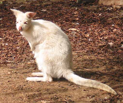 From Emu Ridge, we headed to Parndana, in the middle of the island, and had lunch at the Parndana Common Hotel (where we were the only customers in the dining room). Then, it was just down the road to the Parndana Wildlife Park. The flavor of the park is very much that of a 1950s-60s US "roadside attraction", rather than that of a zoo or conservation-society-run wildlife park. There was a tremendous variety of wildlife, from scores of types of parrots and cockatoos, to albino kangaroos and wallabies, echidnas, koalas, crocodiles, etc. However, most of the birds were in small cages, and the animal exhibits were fairly small and bare, other than a couple kangaroo and deer paddocks, which were reasonably large. We did have a good time, seeing all these creatures close up which would be very difficult to see in the wild. It was hard for anyone to pick favorites, but some we liked included the echidnas, koalas (picture by Lucy) and the albino Tammar Wallaby. The girls enjoyed feeding the kangaroos. One of the birds which we saw, and all thought extremely pretty was this one (picture by Clara). Unfortunately, no one wrote down the name, and we couldn't find it in our Birds of Australia book, so perhaps it is an introduced species.